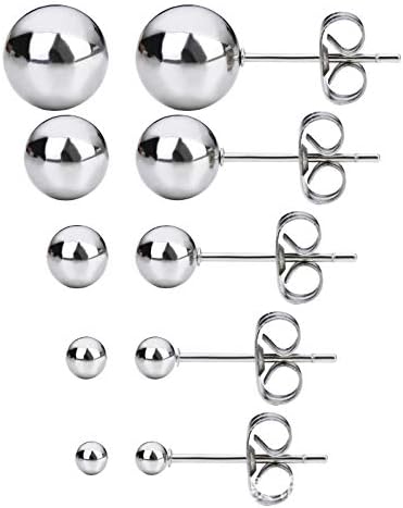 Lot de 6 boucles d'oreilles rondes en acier inoxydable - 3 mm - 4 mm - 6 mm - 8 mm - Avec écrou - Pour bijoux - Taille au choix (boule de 8 mm - 3 paires)