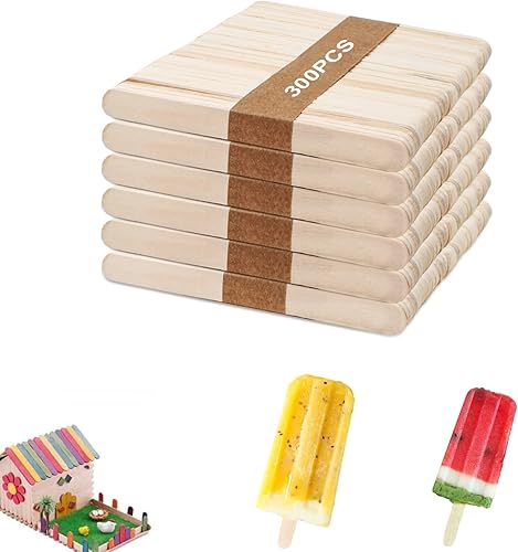 300 PCS Bâton en Bois, Bâton de Glace en Bois Naturelle, 114 mm x 9 mm x 2 mm, Bouleau, Bâton de Glace Bâton d'artisanat Bois Couleur de Base, Idéal pour bricoler et décorer