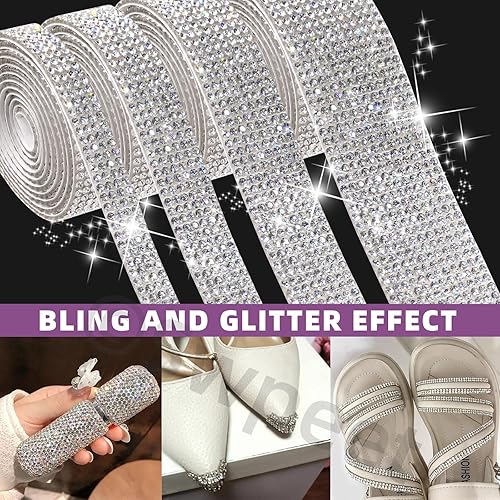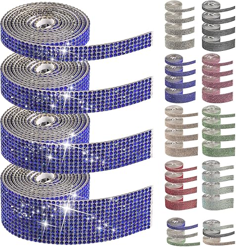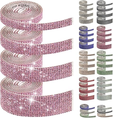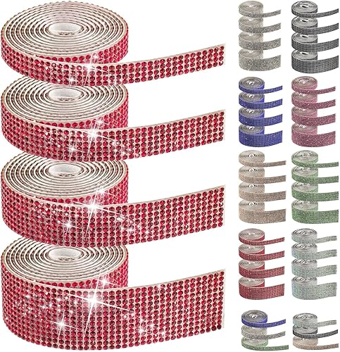 Swpeet Lot de 4 rouleaux de ruban de strass autocollants rouges de 4 tailles pour travaux manuels, décoration de téléphone