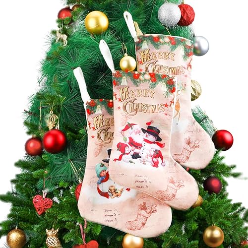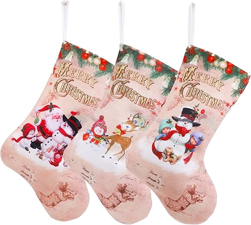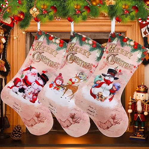 QKURT Noël Bas, 12 'Ensemble de 3 caractères de Noël Classiques de père Noël/Bonhomme de Neige/Renne pour Les Cadeaux de décoration de fête d'ornement de Noël