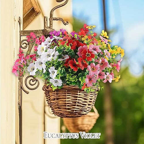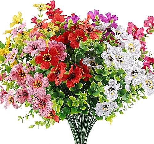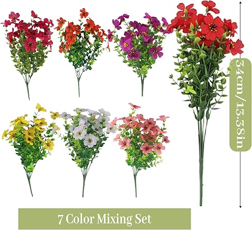 CIYIN Lot de 7 Paquets de Fleurs Artificielles, Fleur en Plastique Fausse Résistant aux UV, Verdure Arbustes Plantes Décoration, pour Intérieur et Extérieur Balcon Jardin Bureau Fenêtre Maison