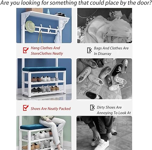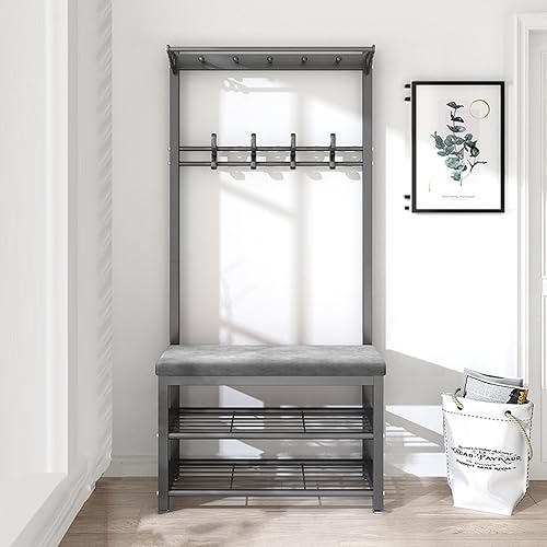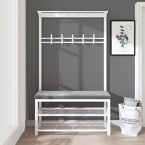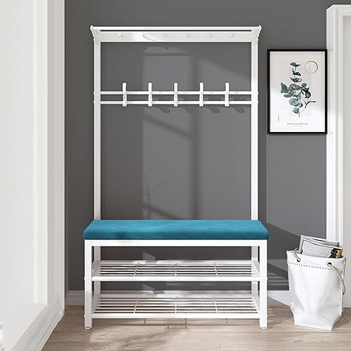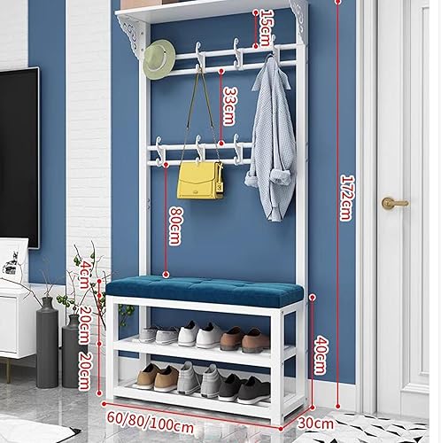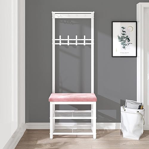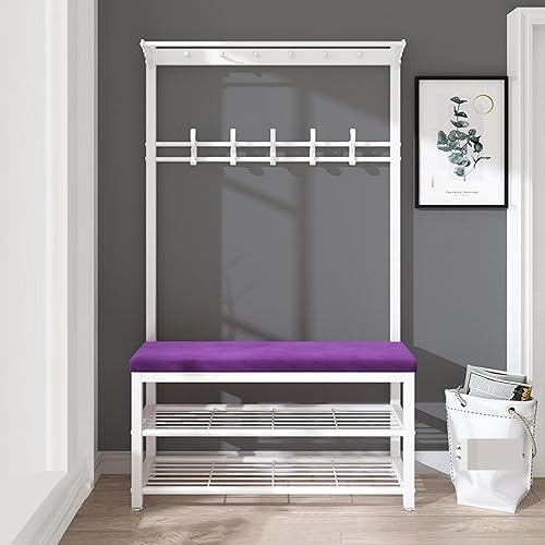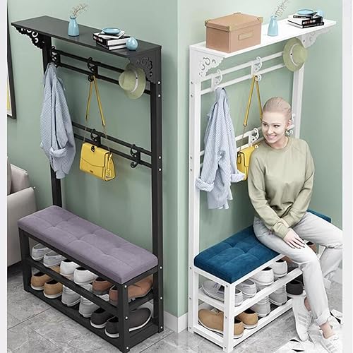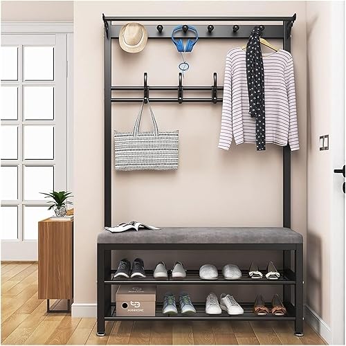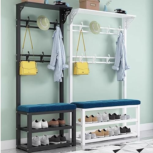 KIYIYDMM Meuble D'entrée Porte-Manteau sur Pied AVCE Crochet Mobiles, Portemanteau avec Banc à Chaussures, Armature Métallique, Vestiaire pour entrée, Chambre à Couche