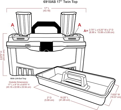 ArtBin 17-Inch Twin Top Tool Box- Black Art Supply Storage Box, 6918AB by ArtBin