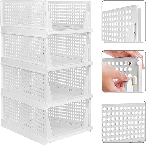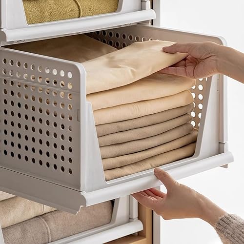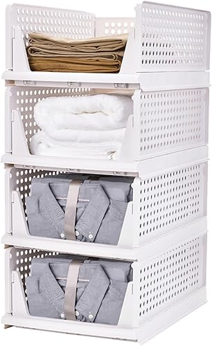 OHMG Organisateur Armoire Vetement 4 pcs Organisateur Tiroir Empilable Rangement Dressing Organisateur Plastique Boite Rangement Vetement et penderies pour Chambre,Penderie,Dressing,Buanderie