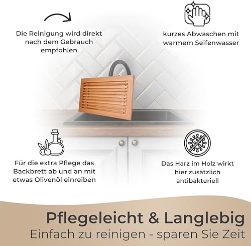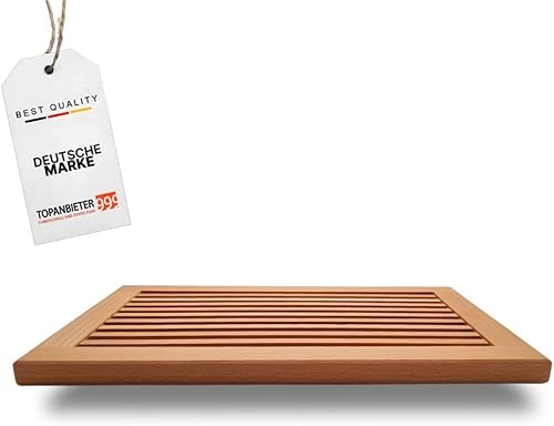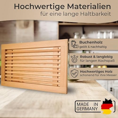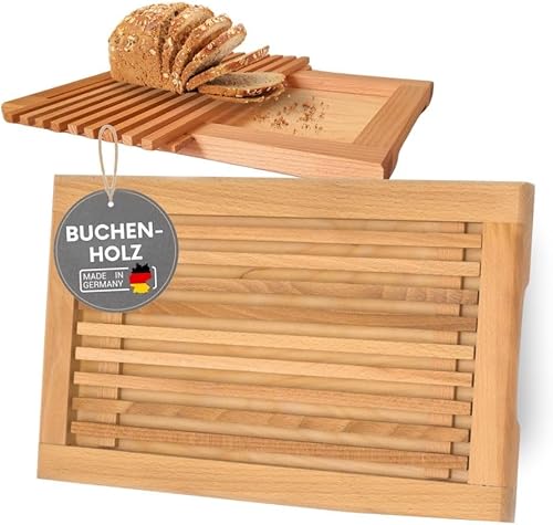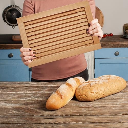 TOPANBIETER 999 Planche à découper à pain avec grille ramasse-miettes et poignées en bois de hêtre huilé – 40 x 25 cm – Planche à découper pour pain, baguettes et petits pains, planche de service