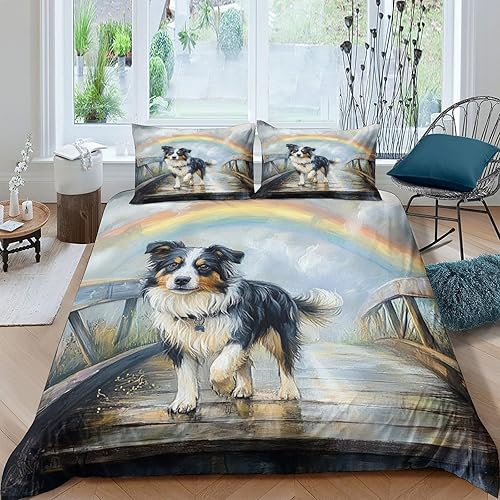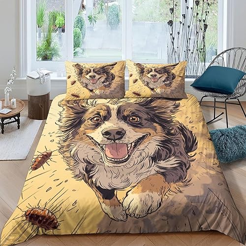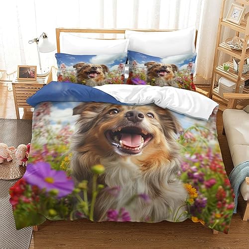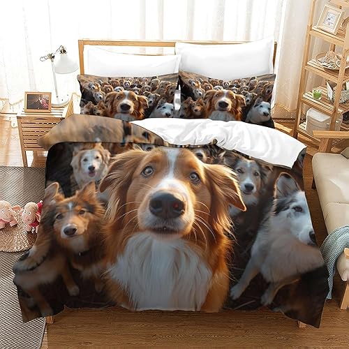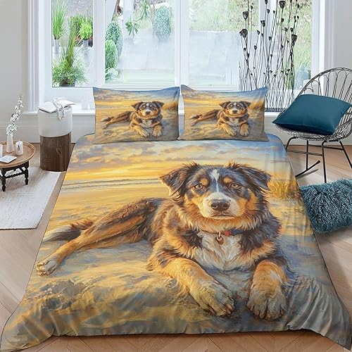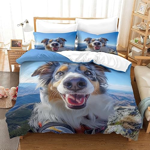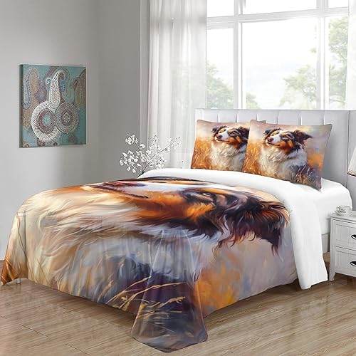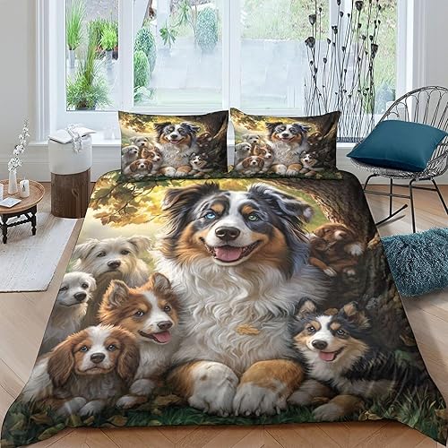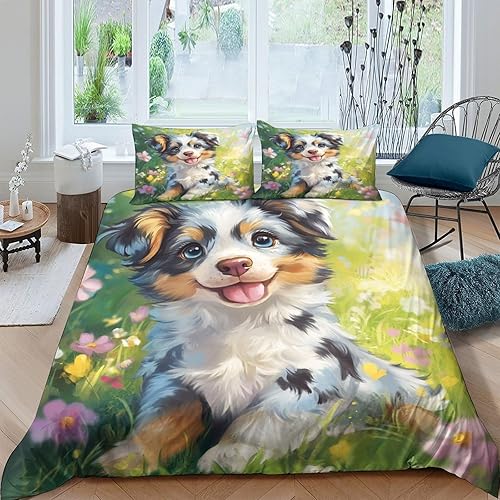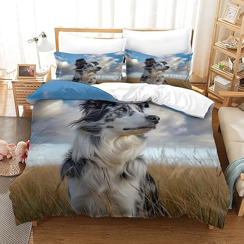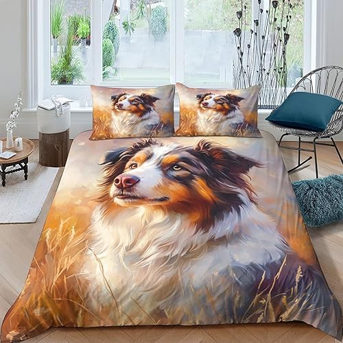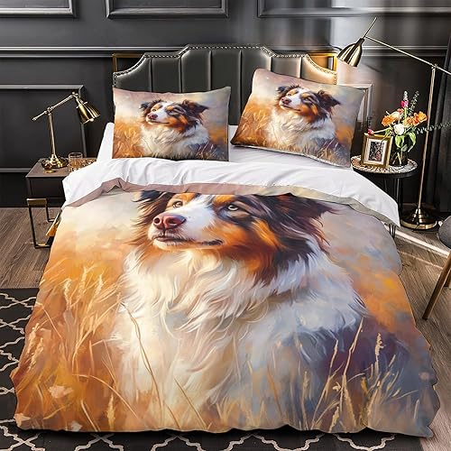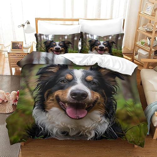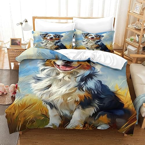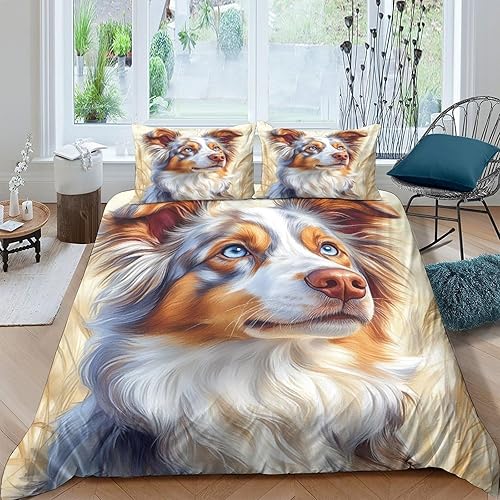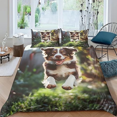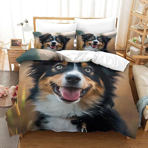 EVMILA Berger Australien 3D Imprimé pour Adultes Et Enfants Housses De Couettes Housse De Couette Microfibr E avec Fermeture À Glissière Parure De Lit avec Taies 3 Pièces Single(140x200cm)