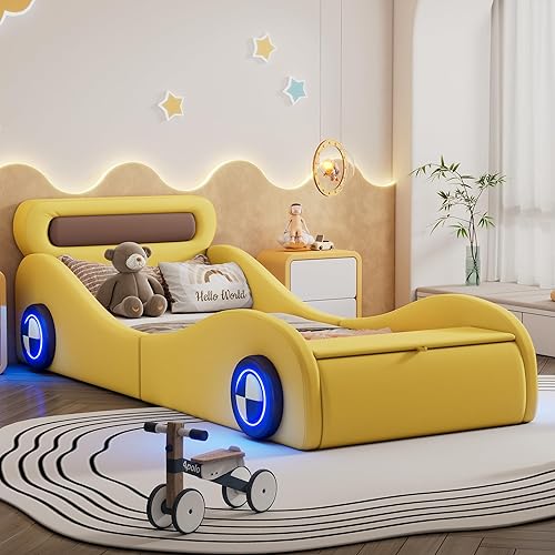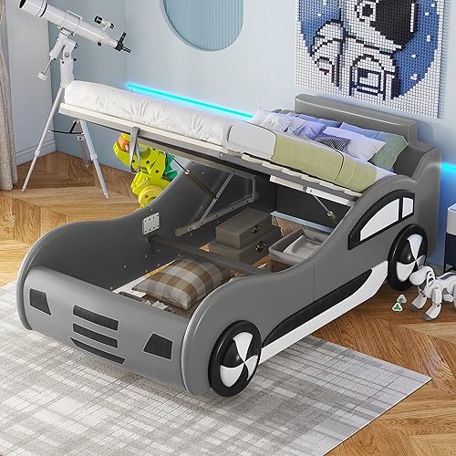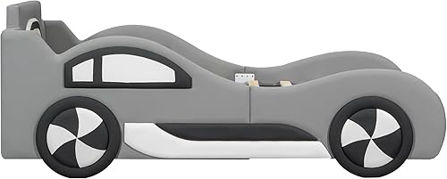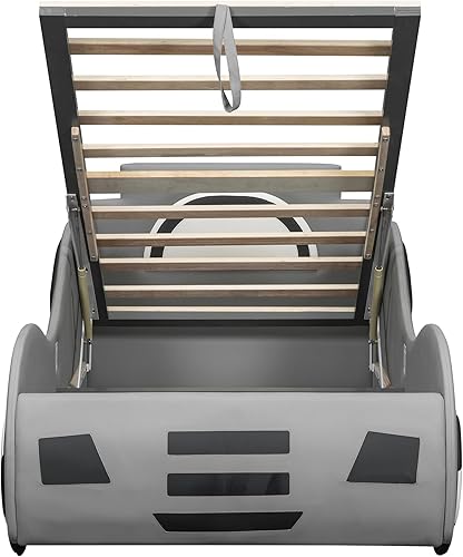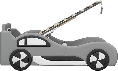 Zepneiy Lit Enfant 90x200 avec Espace de Rangement, Lit Voiture Garcon avec à Lattes, Cadre de lit Simple aus PU Blanc (sans Matelas)