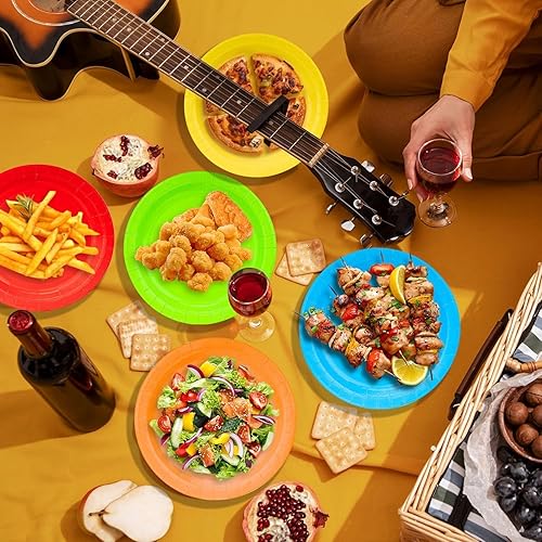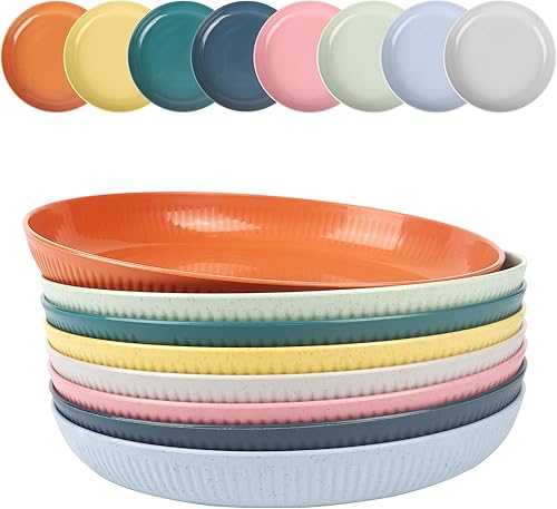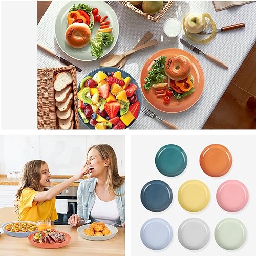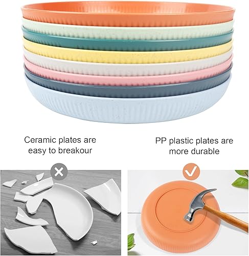 PullinTimes Lot de 8 Assiettes en plastique,22.5CM,Assiettes à Dîner Plastique Réutilisables,Assiettes au Lave-Vaisselle et au Micro-Ondes pour Pizza, Pâtes, Gâteaux, Camping, Pique-nique,8 Colori