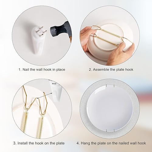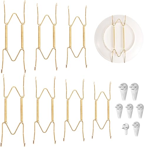 7pcs Support Mural pour Assiettes Deco, 15,24/20,32/25,4/30,48cm Support Mural en Acier pour Assiettes Crochets en Forme de W pour Assiettes Décoratives Arts Antiques