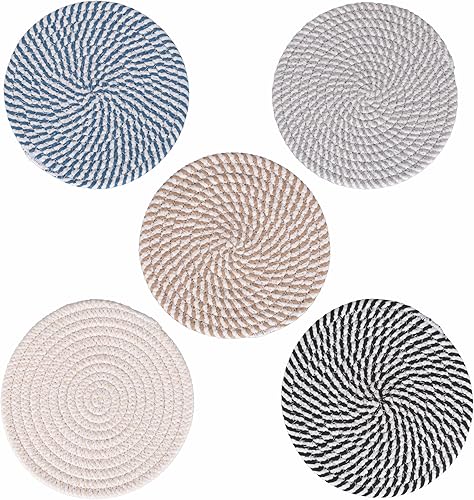 Villa d'Este Home Tivoli Lot de 5 Dessous de Plat en Polycoton Effet Crochet Ø 19 x 0,7 cm