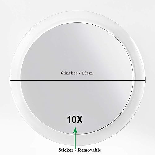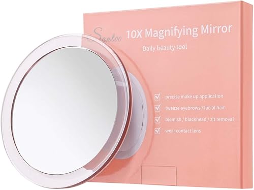 SANTOO 10X Grossissant Miroir avec 3 ventouses de Montage pour Le Maquillage - Sourcils/pincements - Suppression des Points Noirs - Miroir de Maquillage pour Salle de Bain/Voyage - 15cm Rond