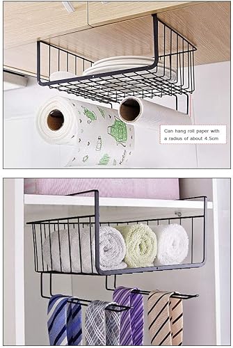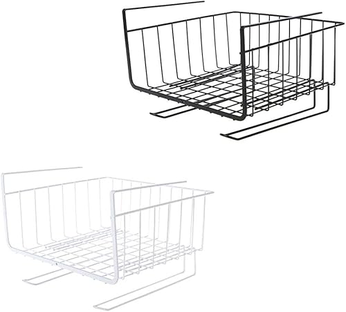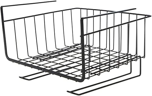 soobu Sous Armoire Étagère de Rangement, Panier Fil Suspendu Métal Grand Espace pour Bureau pour Armoire (Noir)