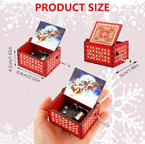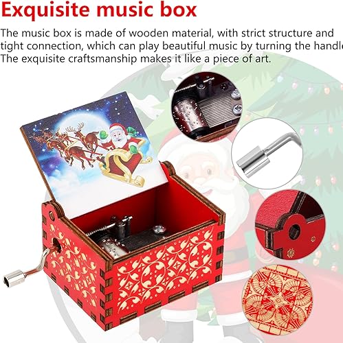 Amaxiu Mini boîte à musique de Noël en bois avec manivelle - Mini boîtes à musique vintage gravées sur le thème de Noël - Décorations de Noël - Cadeaux pour le Nouvel An (Jingle Bells, B)