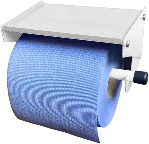 MegaMaxx Porte-rouleau et papier bleu avec étagère de rangement – Distributeur mural pour serviettes en papier industriel (blanc)