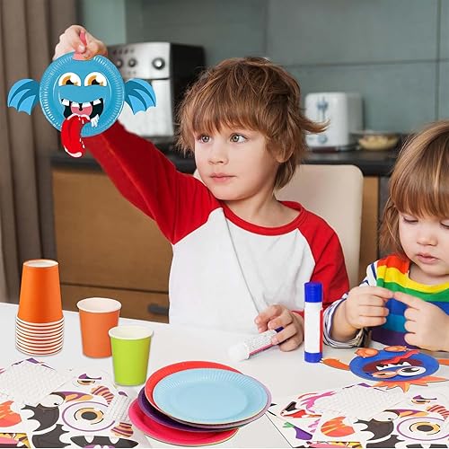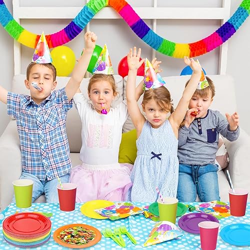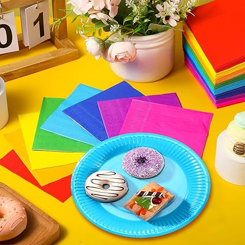Lot de 90 assiettes en carton, gobelets, serviettes, assiettes plates, serviettes de table multicolores, serviettes de table pour déjeuner, cocktail, gobelets de 250 ml pour bricolage, anniversaire