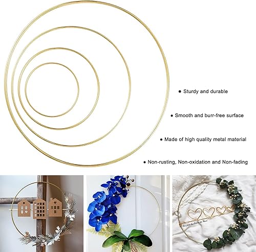 8 Pièces Couronnes Florales en Métal, 4 Tailles 18 cm 20 cm 25 cm 30 cm Anneaux en métal doré pour Bricolage Cercles Floraux Artisanat, pour Faire Un décor de Couronne de Mariage et Artisanat Mural