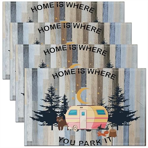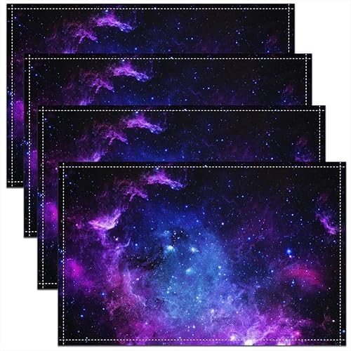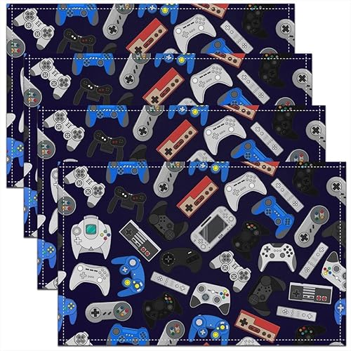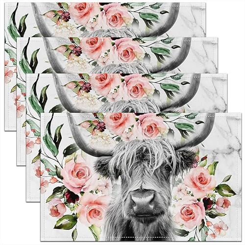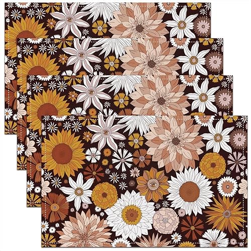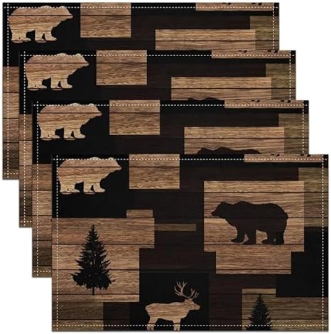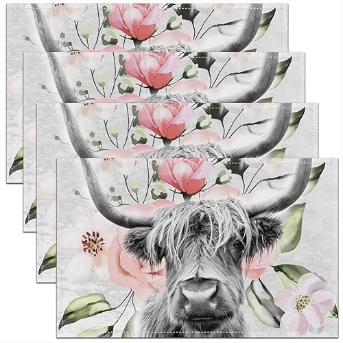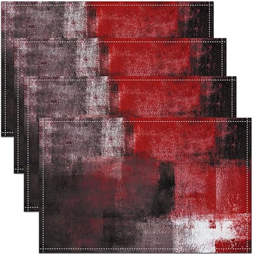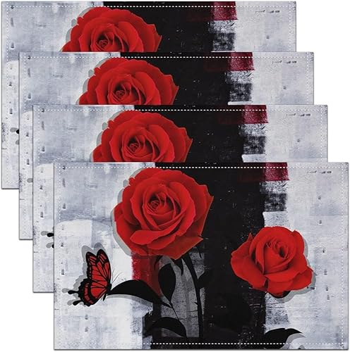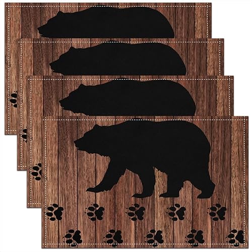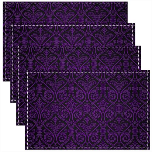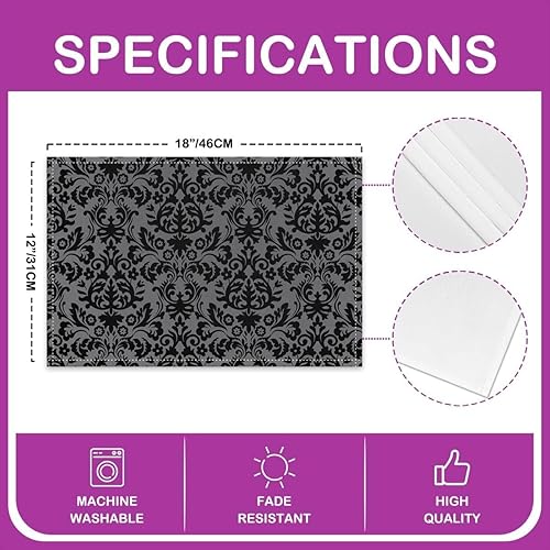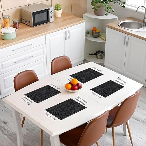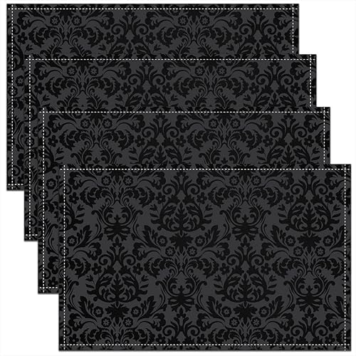 Homewish Lot de 4 Sets de Table Damassé Noir, Tapis de Table Antique Victorien Baroque, Sets de Table Floral Vintage Gothique, Sets de Table Bohème Antidérapant, pour Table À Manger, 45cmx30cm