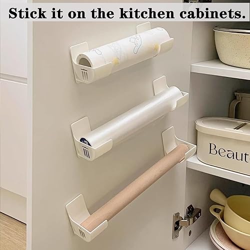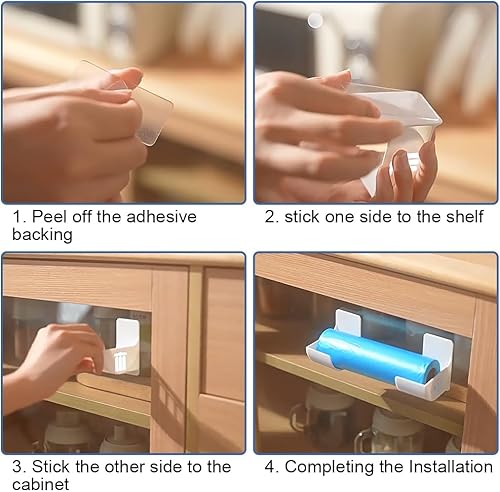 Lot de 4 organisateurs de cuisine non perforés - Boîte de rangement murale autocollante - Pour porte d'armoire - Étagère murale - Distributeur de sac poubelle - Organiseur de cuisine pour film d'étain