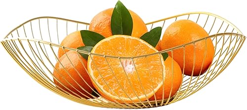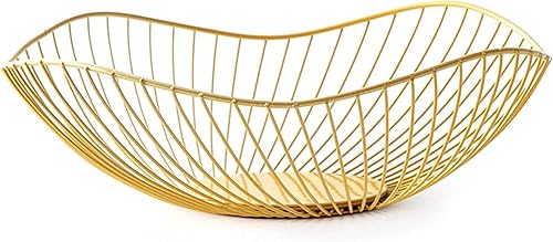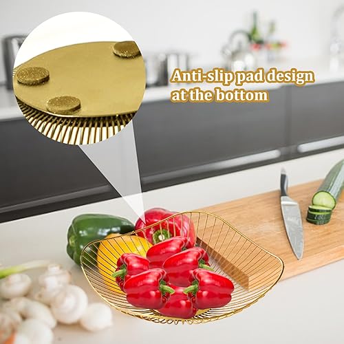Bol à fruits en fil de fer antidérapant, minimaliste, forte charge, corbeille à fruits de grande capacité, revêtement doré, soudé, inclinable, bols à fruits drainants pour bonbons, collations, légumes
