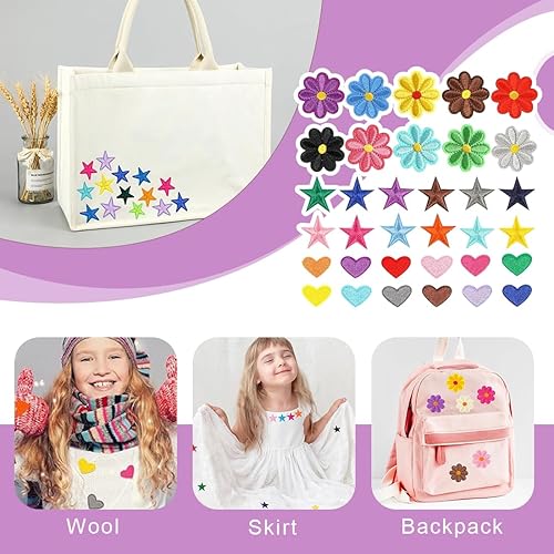 QOWUXHZ 60 Pièces Ecusson A Coudre Écussons Brodés De Styles Assortis À Coudre Ou À Repasser Fleur Amour Étoile Patch Pour Vêtements Robes Pantalons Chapeaux Jeans Fleurs À Coudre