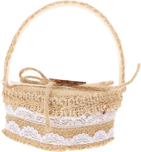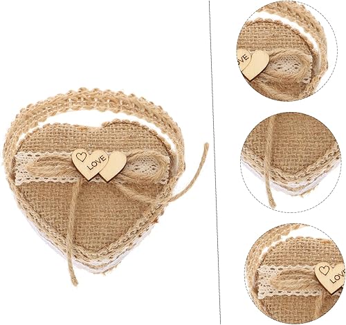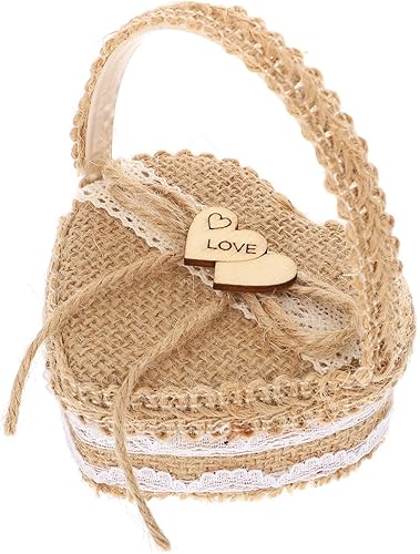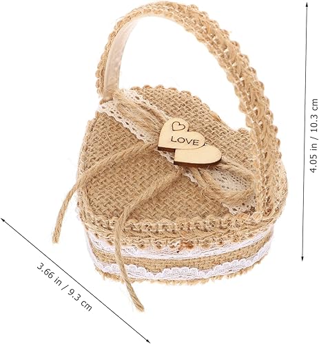 Artibetter 2 Pièces Boîte De Bague Porte-alliances Panier D'alliances Panier Cadeau En Forme De Coeur Paniers Cadeaux Pour Femmes Panier Cadeau Femme Bague Coeur Lin Manquer Poignée Bijoux