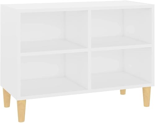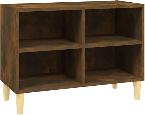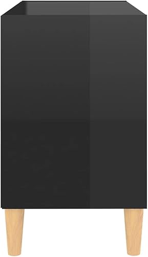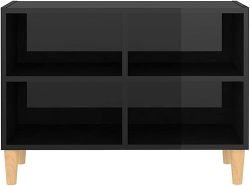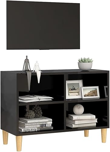 vidaXL Meuble TV avec Pieds en Bois Massif, Armoire de Télévision avec 4 Compartiments, Meuble Télé avec Rangement Salon, Scandinave, Noir