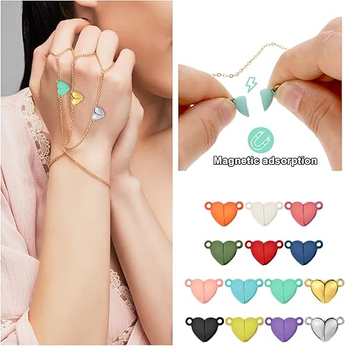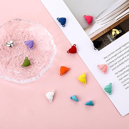 Lot de 14 paires de fermoirs magnétiques en forme de cœur multicolores pour la fabrication de bijoux, pendentifs, colliers, bracelets, loisirs créatifs