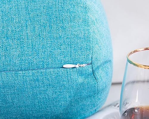 Housse de traversin cylindrique en lin pour tout le corps - Pour soutien du bois - Pour mousse à mémoire de forme, mousse déchiquetée/coton (bleu, 15 x 45 cm)