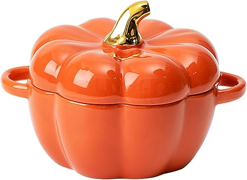 Casserole pour four néerlandais avec couvercle, poterie d'automne avec poignées, mini bols en céramique, bol décoratif pour la maison, automne, Halloween, orange
