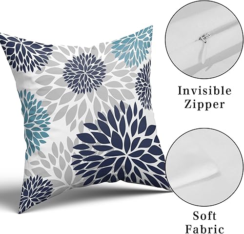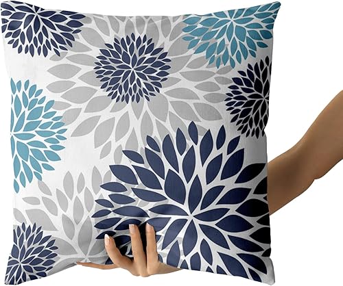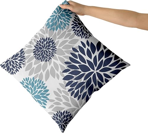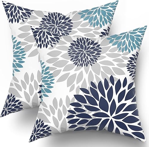 Kawani Lot de 2 housses de coussin bleu marine 45,7 x 45,7 cm avec fleur de dahlia violette turquoise et gris sarcelle