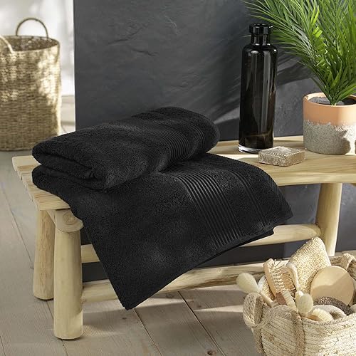 Douceur d'Intérieur Lot de 6 Draps de Bain 90 x 150 cm - 100% Coton - Tendresse Noir