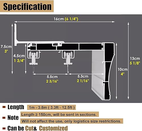 Rail de rideau monté au plafond avec double rails, boîtes à rideaux pour fenêtres, cloisons de séparation, ensemble de cantonnière, 145 cm
