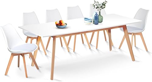 IDMarket - Ensemble Table à Manger Extensible Inga 160-200 cm et 6 chaises SARA Blanches Design scandinave