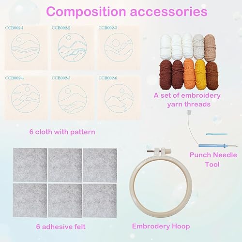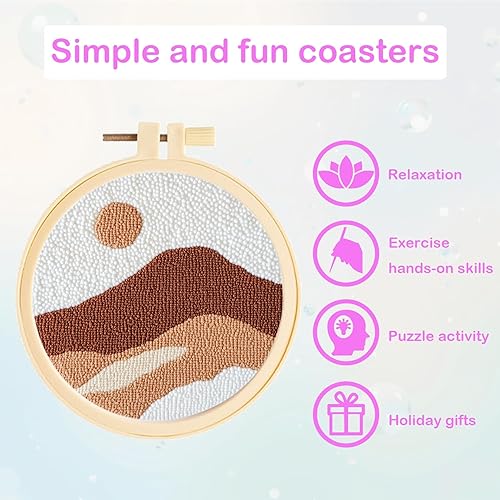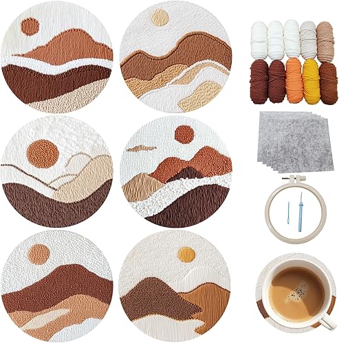 cukol cukol 6pcs Punch Needle Dessous de Verre Kit Adulte Enfant Debutant, Paysage Kit D'Aiguilles à Poinçonner Punch Needle Dessous Sous Verre Set Originaux