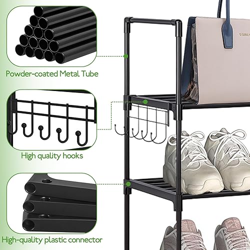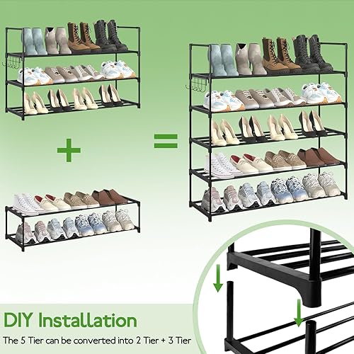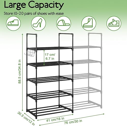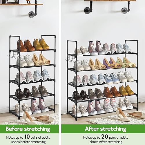 Étagère à Chaussures à 5 Niveaux, Extensible, pour 10 à 20 Paires, en métal, étroit, réglable, Robuste, pour entrée, Chambre à Coucher