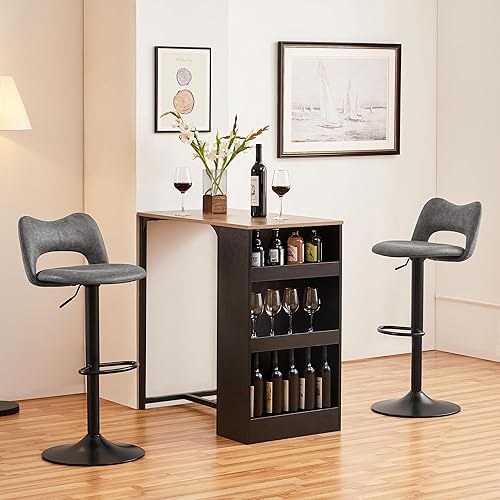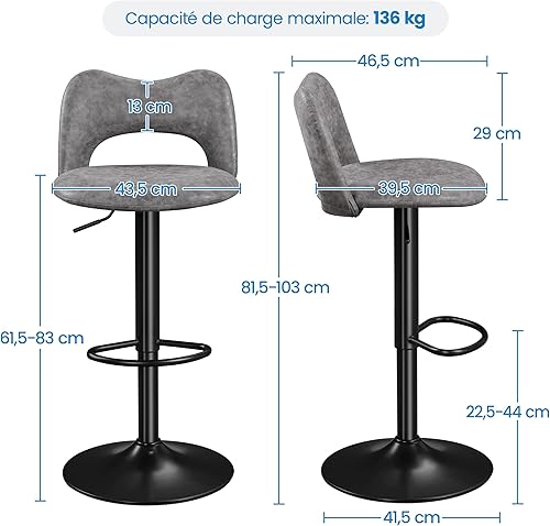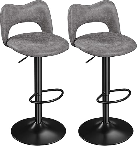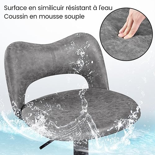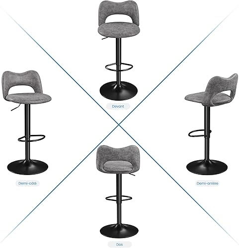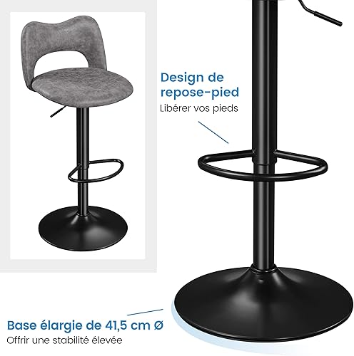 Yaheetech Lot de 2 Tabourets de Bar en Similicuir avec Dossier Oreillers Chat Réglables en Hauteur de 81,5 à 103 cm Chaises de Cuisine Pivotants avec Repose-Pied pour Cuisine Bistrot Gris