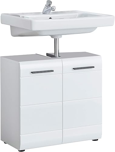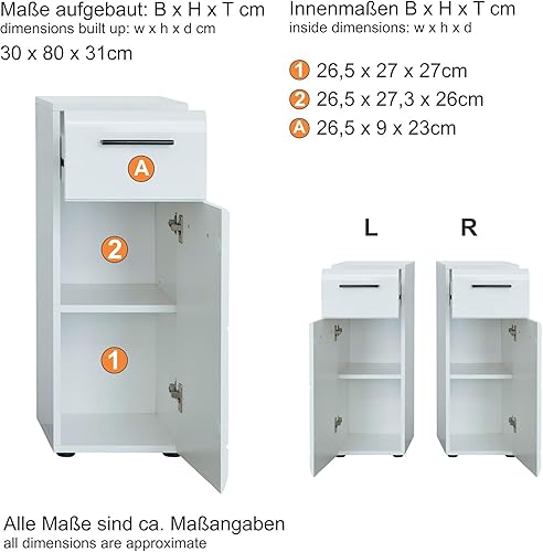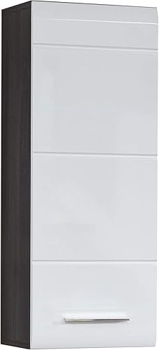 trendteam smart living Armoire de Toilette avec Beaucoup d'espace d'rangement, Line, 30 x 80 x 31 cm, Blanc Brillant Sardegna Argent Fumée