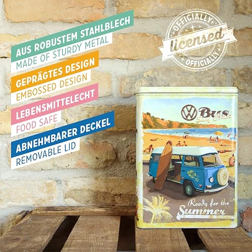 Nostalgic-Art Boîte rétro XL, Bulli T1, Beetle – Summer, Beach – Idée de Cadeau pour Le Bus VW, Grande récipient à céréale métal, Design Vintage, 4 l