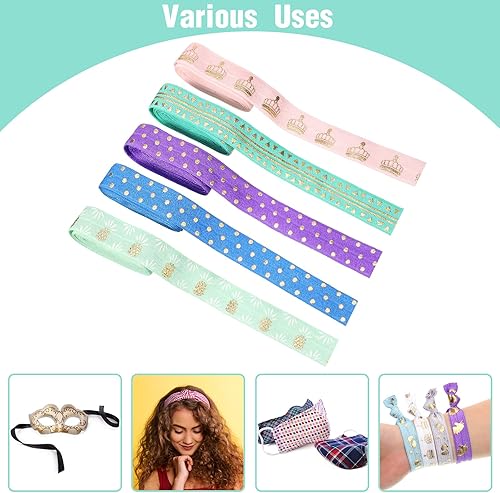 20 Yards Ruban Élastique Imprimées Pliantes à Paillettes 5/8 Pouces 15 mm Bandeau Élastiques Ruban Élastique pour Élastiques à Cheveux DIY Couture Artisanat, 20 Couleurs par 1 Yard
