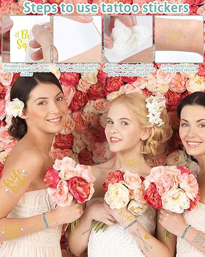BARRU Set d'Accessoires pour Enterrement de Vie de Jeune Fille et Autocollants Gold, Bracelets EVJF Braut et Team Braut Bracelet de Mariée Bracelet de Mariage pour Décoration Fête Cadeau