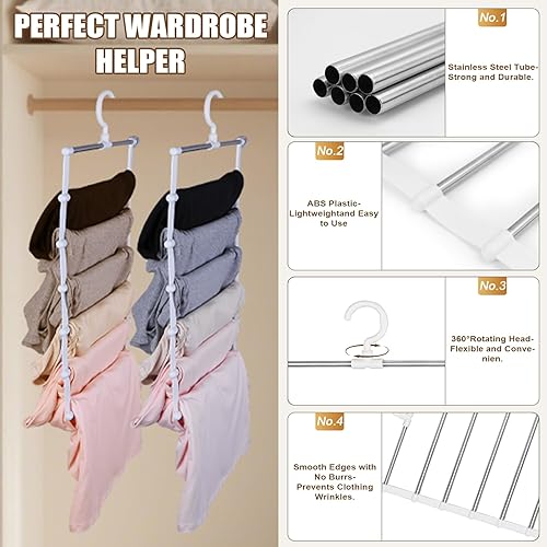 3 Pièces Cintre Pantalon Pliable, Cintre Gain De Place pour Armoire, 6 en 1 Cintre Pantalon, Cintre en Acier Inoxydable Convient Multifonctionnel Échelle pour Les Écharpes, Jeans, Vêtements, Serviette