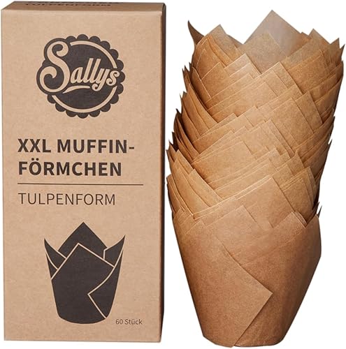 Sallys Lot de 60 caissettes à muffins XXL en forme de tulipe - Papier séparateur marron non blanchi