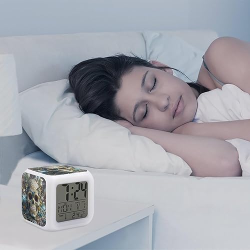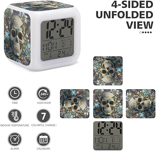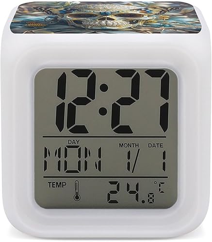 JTREWBV Réveil lumineux, motif tête de mort papillon, réveil de voyage, réveil à piles, réveil portable pour voyage