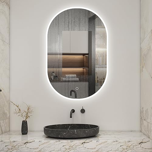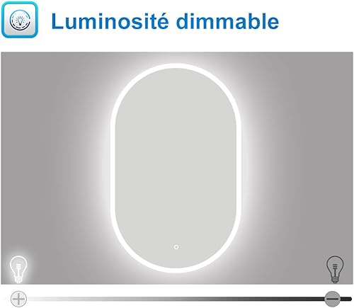 AICA Miroir de Salle de Bain Ovale 60x80cm, Miroir Mural LED avec Dimmable + Anti-buée