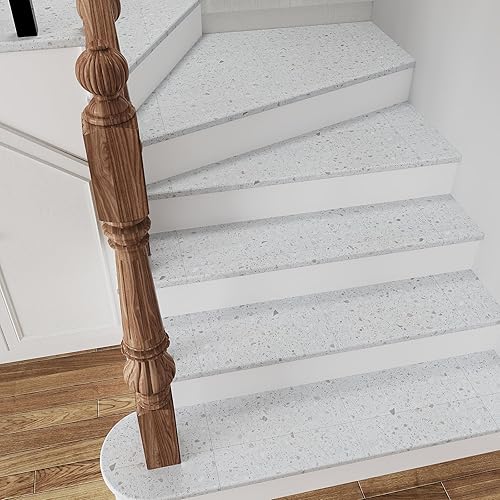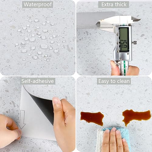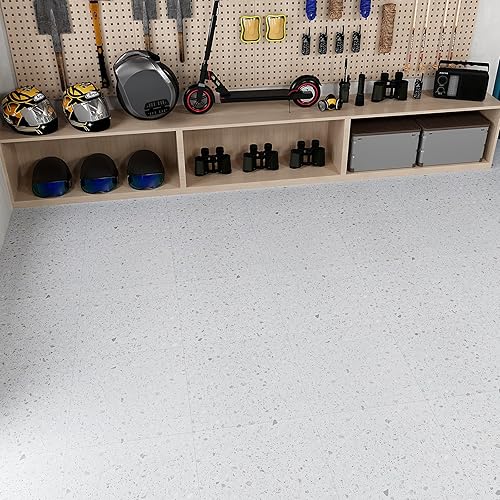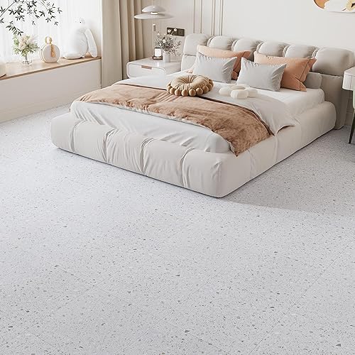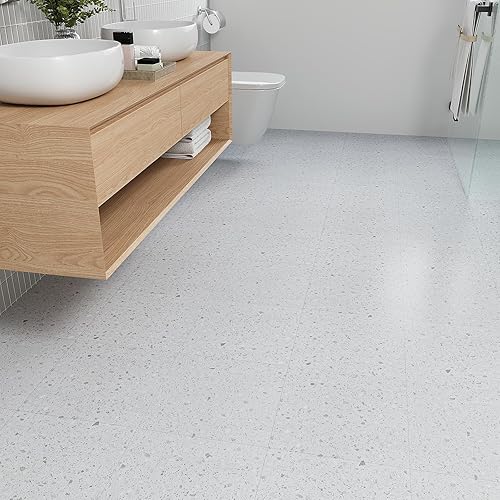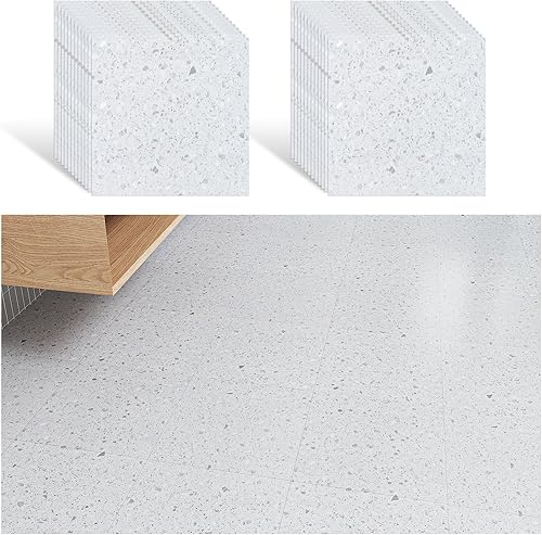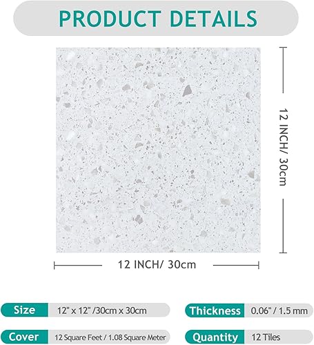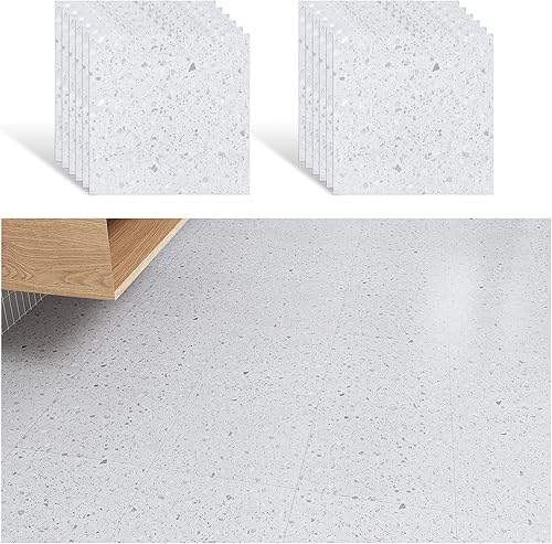 VEELIKE Dalle PVC Adhesive Sol Effet Terrazzo Blanc Carrelage Adhesif Sol Salle de Bain Carreaux Adhesif Cuisine Stickers Carrelage Imperméable Sol PVC Adhesif Salon 1.5mm 30 cm × 30 cm 12 Pièces