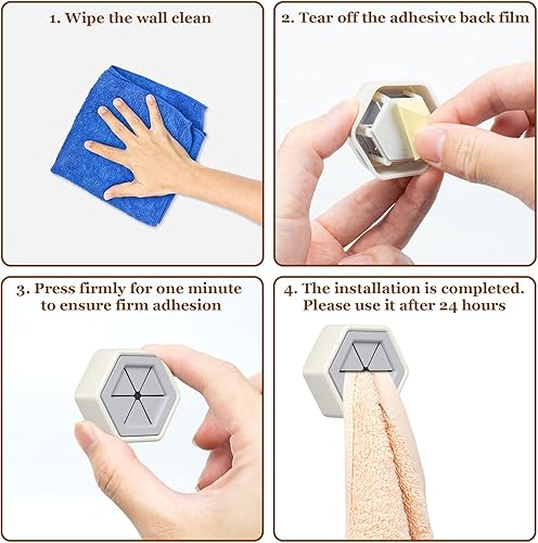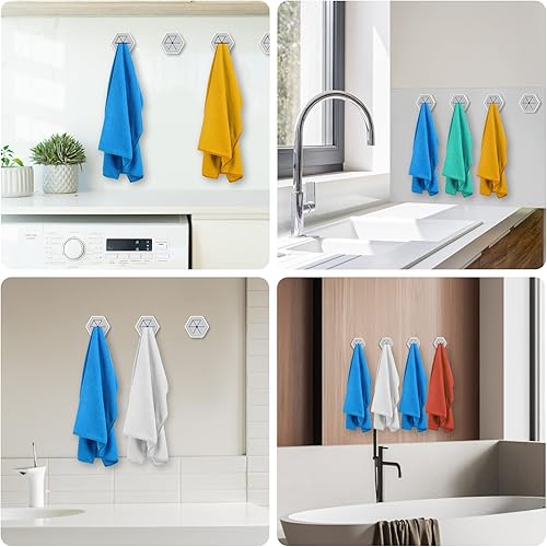 Uktunu 6 Pièces Accroche Torchons Adhesif,Accroche Torchon Cuisine,Accroche Torchon Ventouse Torchon Cuisine Porte Torchon Ventouse Autoadhésives Sans Perçage Pour Salle De Bain Armoire (Hexagonal)