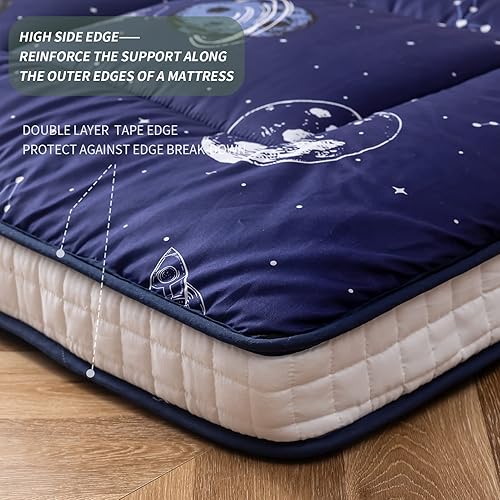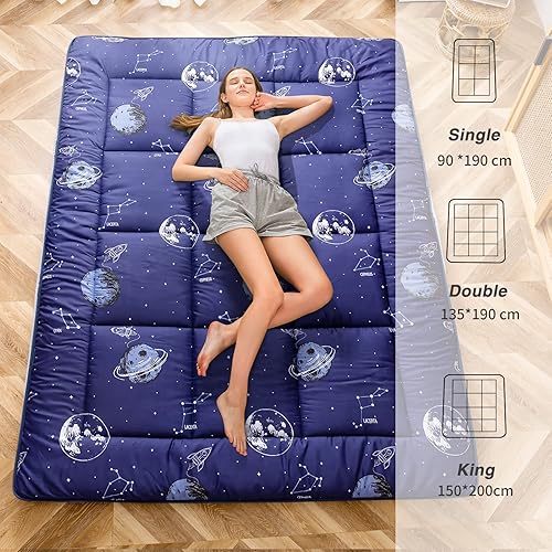 MAXYOYO Matelas futon rembourré, Matelas de Sol Japonais matelassé, épais, Pliable, Respirant, pour canapé de Camping (Aventure Spatiale, 150x200 cm)