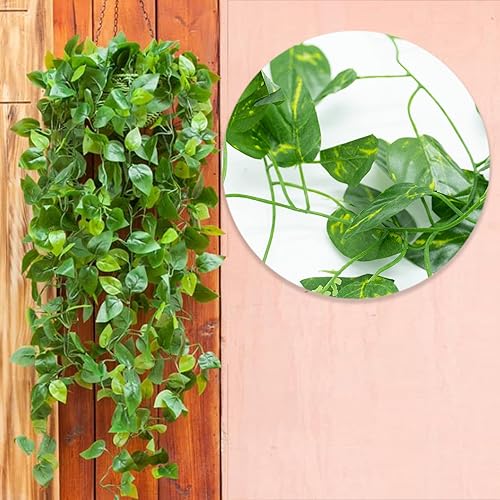 REBECASKYENS 1 guirlande de lierre artificiel - Feuilles vertes - Pour mariage, cuisine, bureau, jardin, balcon, chambre à coucher - Décoration murale (Scindapsus)