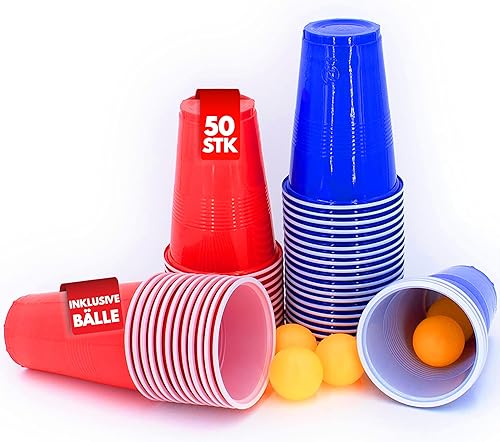 Kyto Lot de 50 gobelets réutilisables en plastique - Pour fête - Couleurs américaines - Bleu/rouge