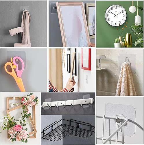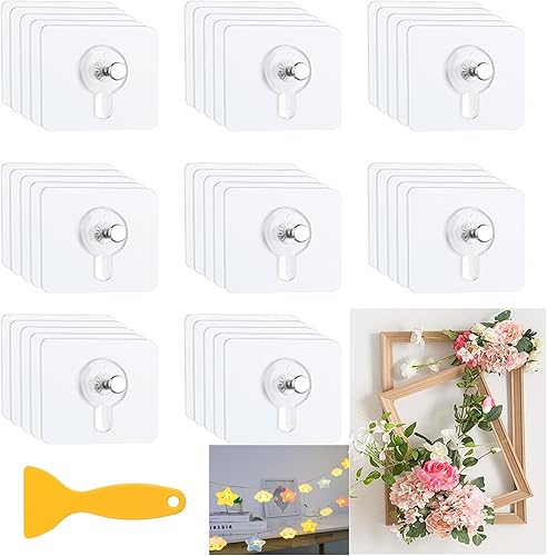 Belvanr 40 Pièces Attache Cadre Adhésif Crochets, Adhésif Accroche Tableau Sans Percer, Fixation Murale Transparent Accroche Cadre avec Petits Grattoirs, pour Accroche Cadres Photo, Art Mural